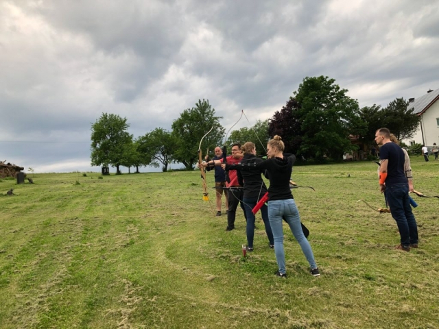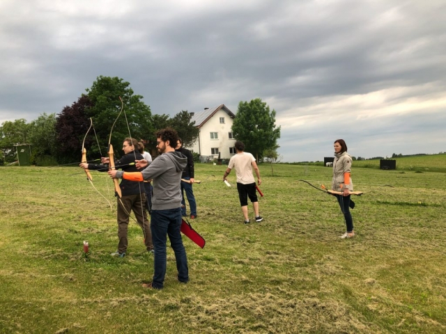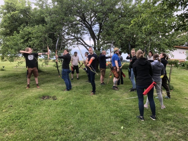 Mit unserer sehr lustigen Gruppe ging es am Samstag durch den wunderschönen Parcours der Aussenrunde, um ein wenig der Hitze zu entgehen und in den kleinen Waldstückchen etwas Schatten ab zu bekommen. Mit ein paar Neuerungen war, wie jedes Jahr, der Parcours eine wahre Freude und mit den Glücksschüssen ein nicht zu kalkulierendes Ergebnis zu erzielen. Am Sonntag machten wir uns dann auf in die Stadtrunde, die immer das besondere Highlight dieses Turniers ist. Auch hier gab es einige neue Ziele und Schüsse und als besonderes Schmankerl gabs ein paar Schüsse im Bogenkino zu absolvieren.