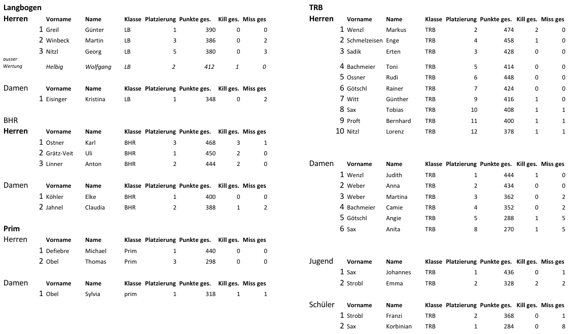 Endergebnis der ISAR – VILS – TROPHY 2025 des Bogen El Dorado Isar Vils